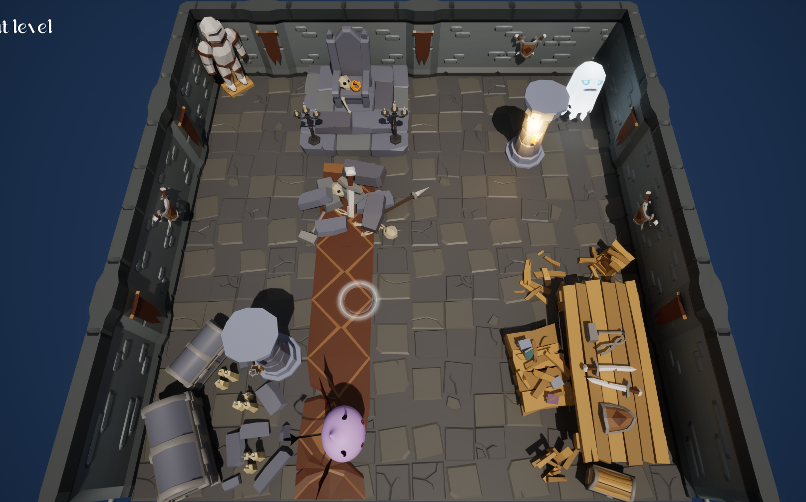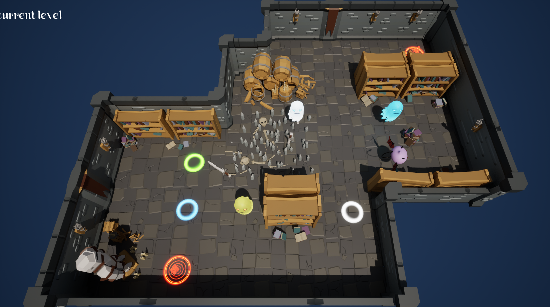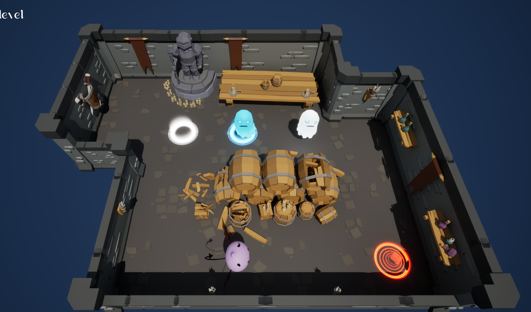 “Geist” is a 3D top-down strategy game. Player will play as a little devil and send the geists of dead adventurers to the corresponding portals in the dungeon. Player needs to think about the route, drive away or draw closer the geists at the appropriate location to move them to the destination. The game can exercise player’s logical thinking and image memory abilities.